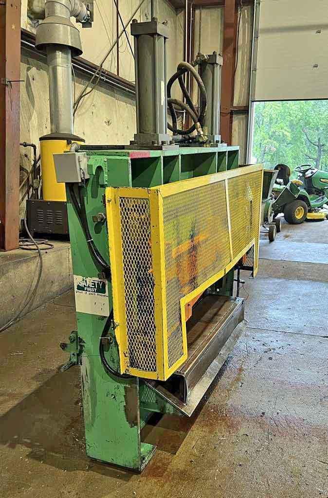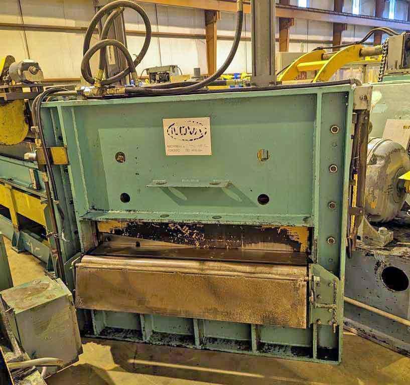 -Capacity: 0.135" x 48" (Mild Steel) -50.5" L x 1" W x 3" High Blade -Hydraulic Operation -(2) - 4" Bore x 14" Stroke Miller Hydraulic Cylinders -Passline: 24.5" from Floor to Top of Bottom Blade -Entry Passline Roll -Less Valving -Overall Size: 80" L x 29" W x 84" High -In Storage: Toledo, OH