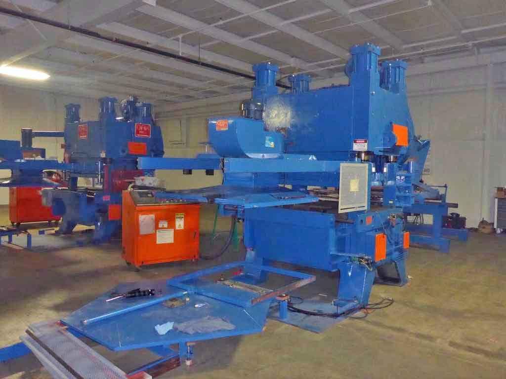 Oak FP3-54-1152 Fin Press Line Specifications: Tonnage: 100 Die Area: 51" l-r x 48" f-b Stroke: 1.50" Shut height: 9" - 12" Bolster: 5" Withdrawal Travel: 9" - 14" Speed: 133 - 300 spm Electrics: 460 volt, 3 ph, 60 cycle Equipped with: Oak uncoiler Fin stock lube tank Fin vacuum suction unit Oak fin Stacker Height of the press: 135" Dimensions: 105" L-R x 93" F-B Weight of press: 35,000 Lbs approx Reconditioned in 2017 Electrics Need Updating