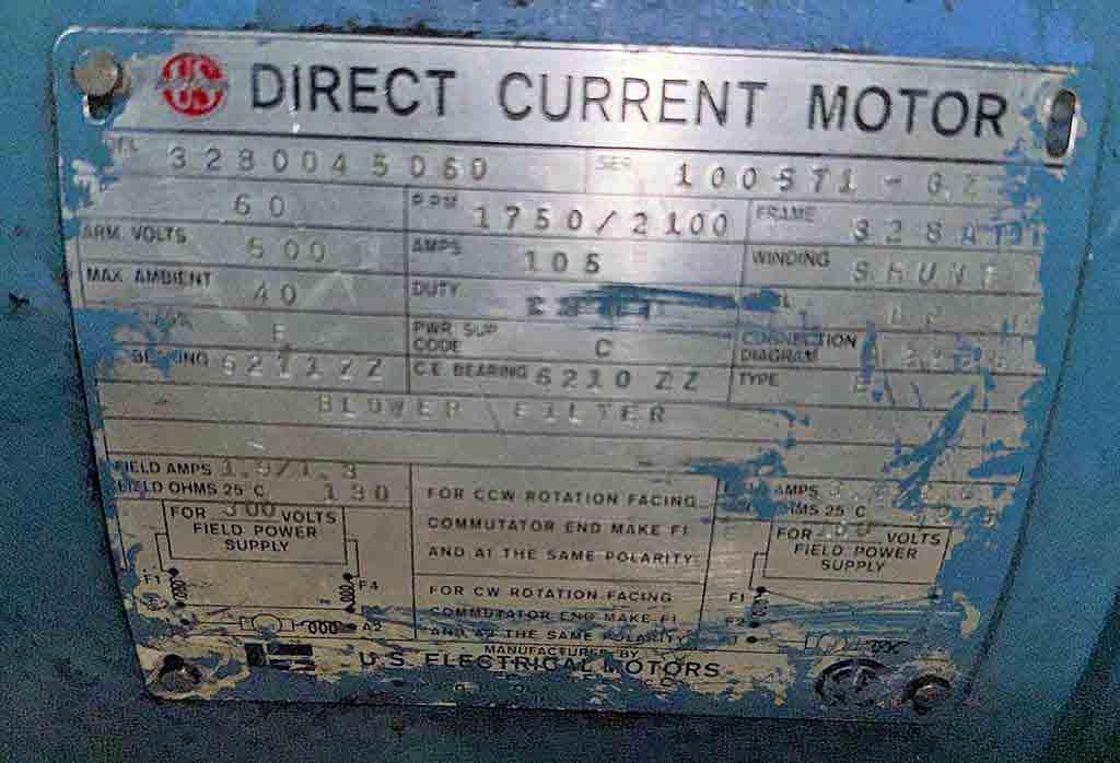 -US 60 HP DC Motor, 1750/2100 RPM, 500 V, 105 Amps, 328AT Frame, Cont. Duty