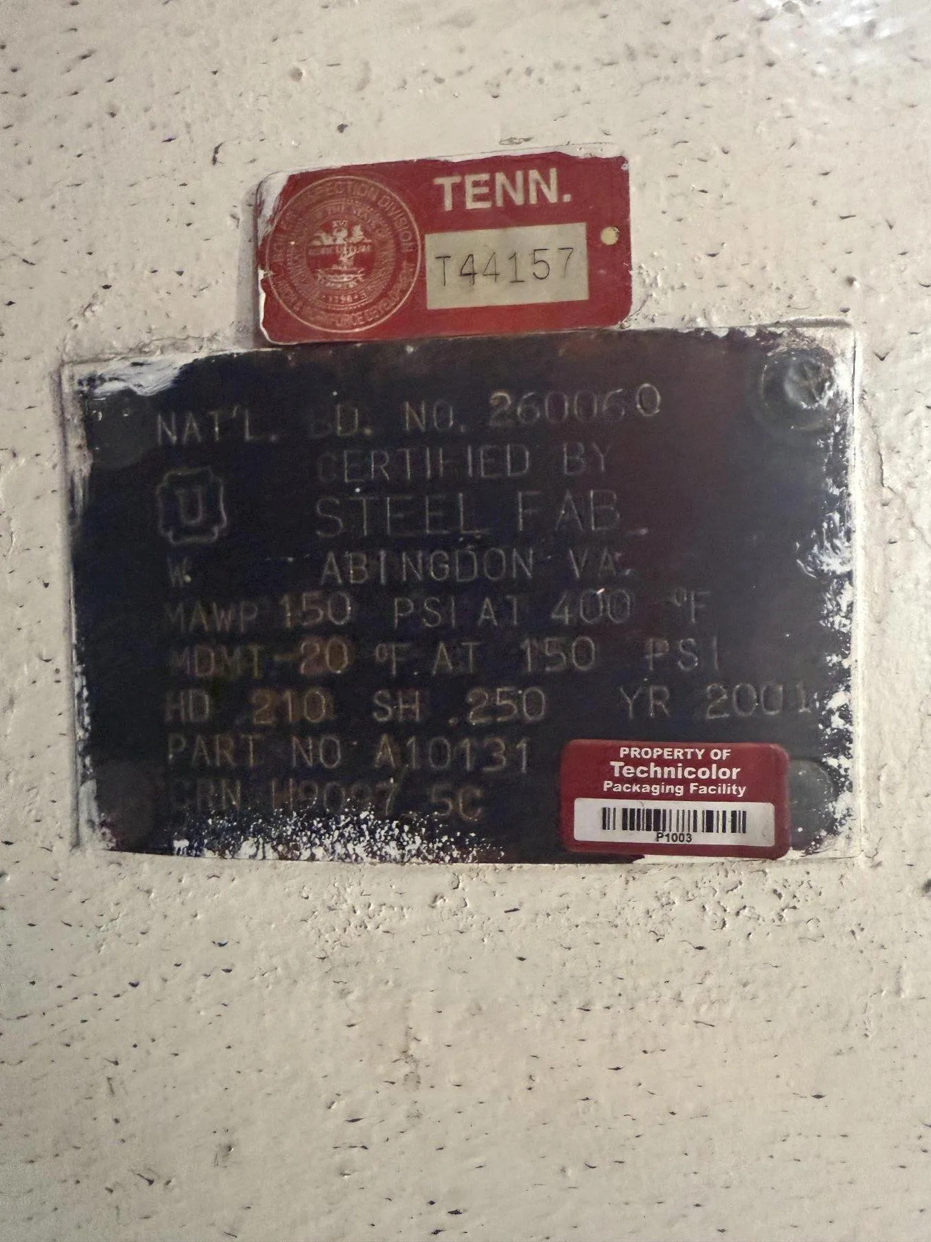 MAWP.......................: 150 PSI @ 400 DEGREES