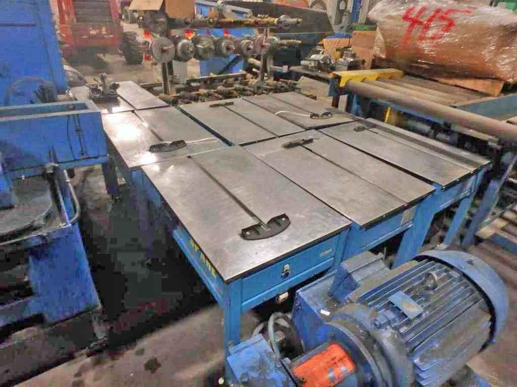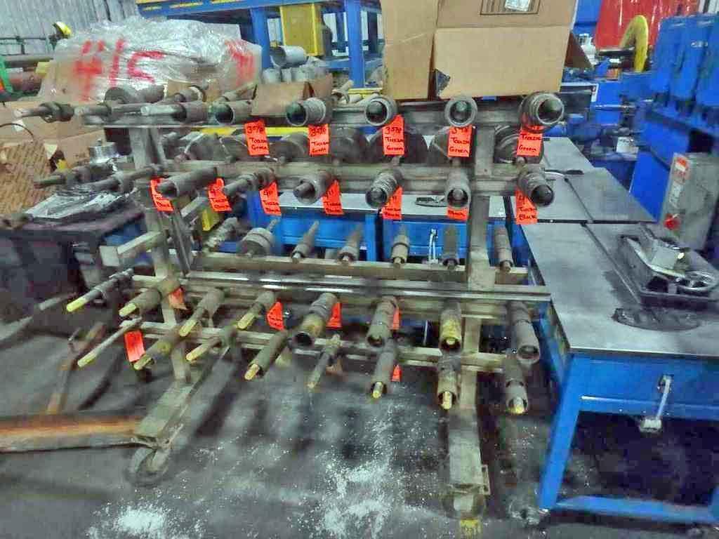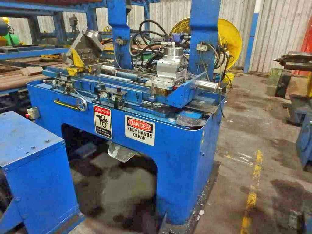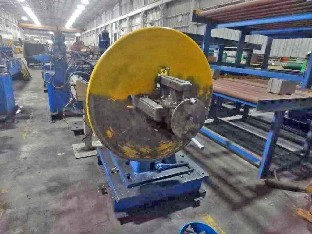 Rafter Rollforming Line -8 Stands -Roll Shaft Dia.: 1.50" -Roll Space: 8" -Tooling to make 1.25" Tall Legs for both Stud & Track -One width only - 3.625" -Material Thickness: Customer was running 20 - 25 Gauge (0.021" - 0.040") -150 FPM Max. Speed -Right to Left Operation Consisting of the following: -Uncoiler: Littel Double End 5,000# Capacity 68" Max. O.D. Electric Brake Manual Expansion -Rollformer: Rafter -Flying Post Punch/Cutoff: Hydraulic Operation with (1) Cutoff Insert to fit in 1 Dieset. -AMS XL200 Series Open Loop Length Controller: -Main Operators Panel: -Hydraulic Power Unit: