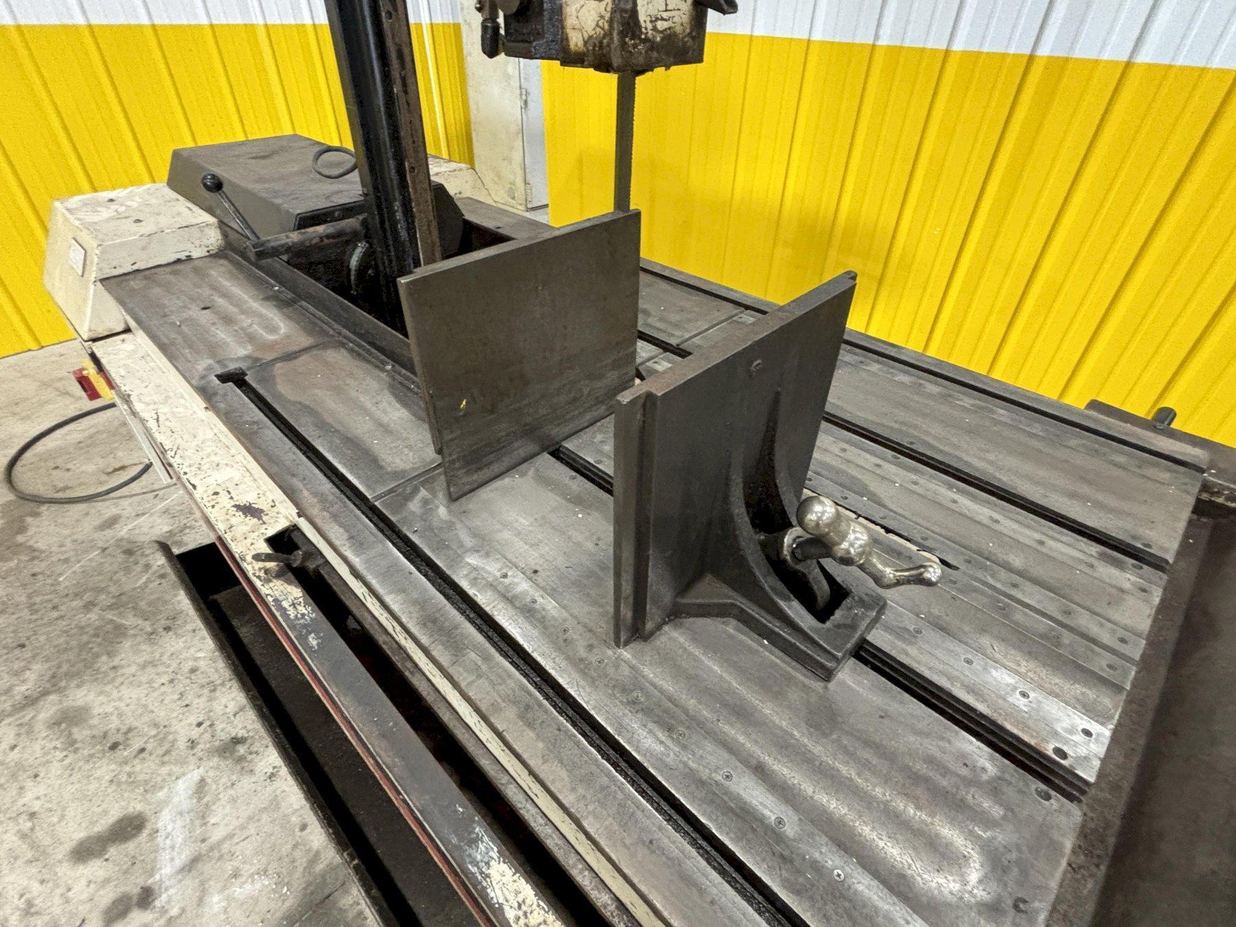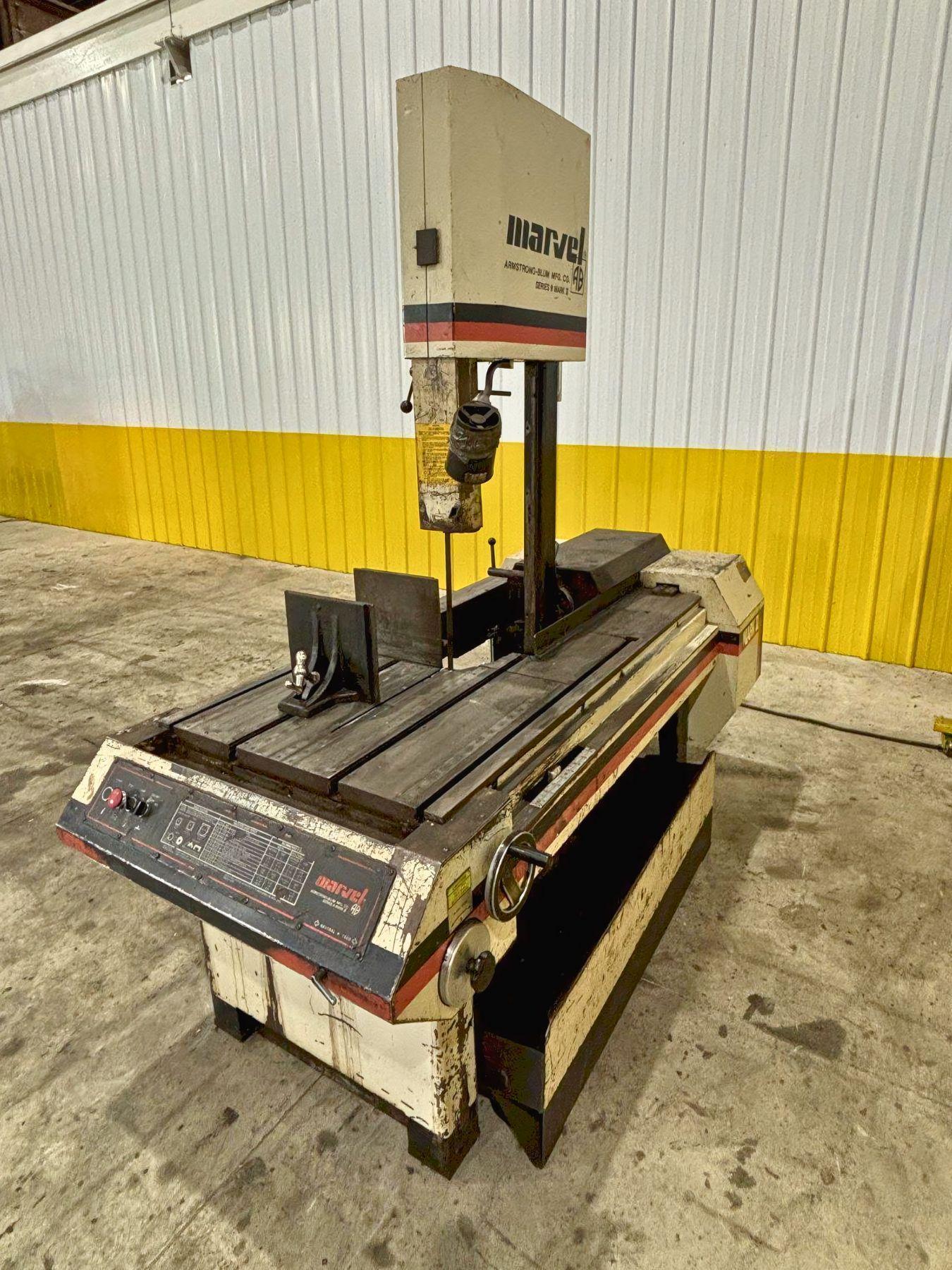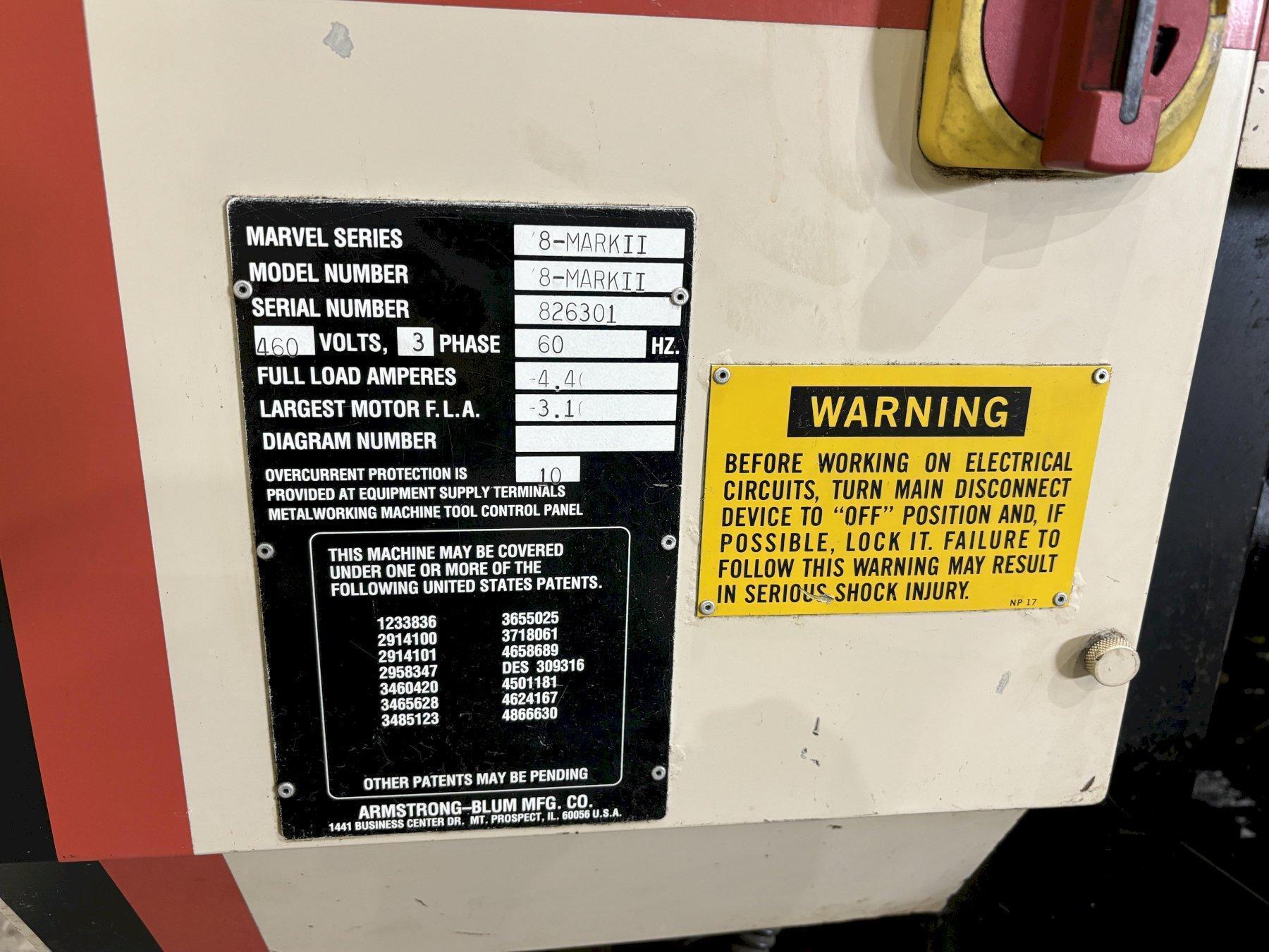 | Specifications: SERIAL ...................... 826301 MODEL ....................... 8 MARK II CAPACITY .................... 18" X 22" CAPACITY AT 45 DEGREES ...... 22" X 12-1/2" BLADE FEED PRESSURE ......... 0# TO 140# BLADE SPEEDS (VARIABLE) ..... 50 TO 450 FPM HEAD TILTS-LEFT OR RIGHT .... 45 DEGREES WORKING AREA OF TABLE ....... 33" X 24" LENGTH OF BLADE ............. 14'6" WIDTH OF BLADE .............. 1" VISES ....................... 6" COOLANT ..................... YES MOTOR ....................... 2 HORSEPOWER |