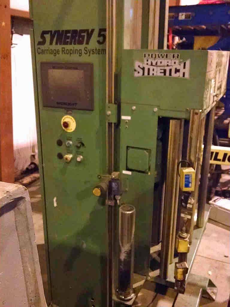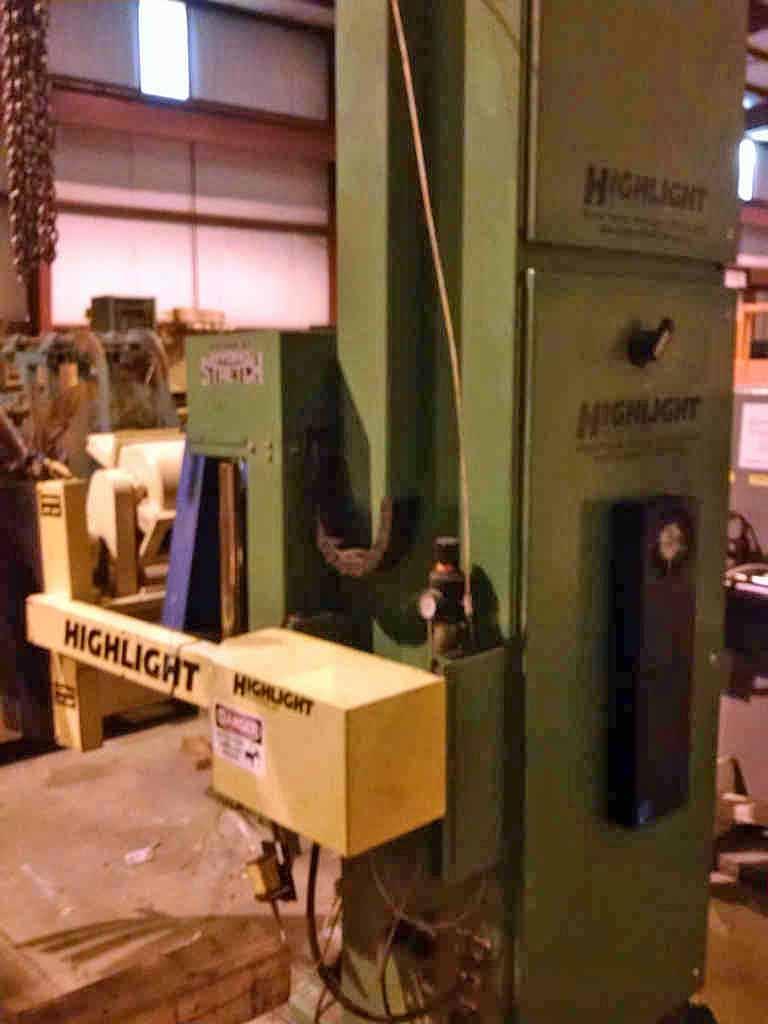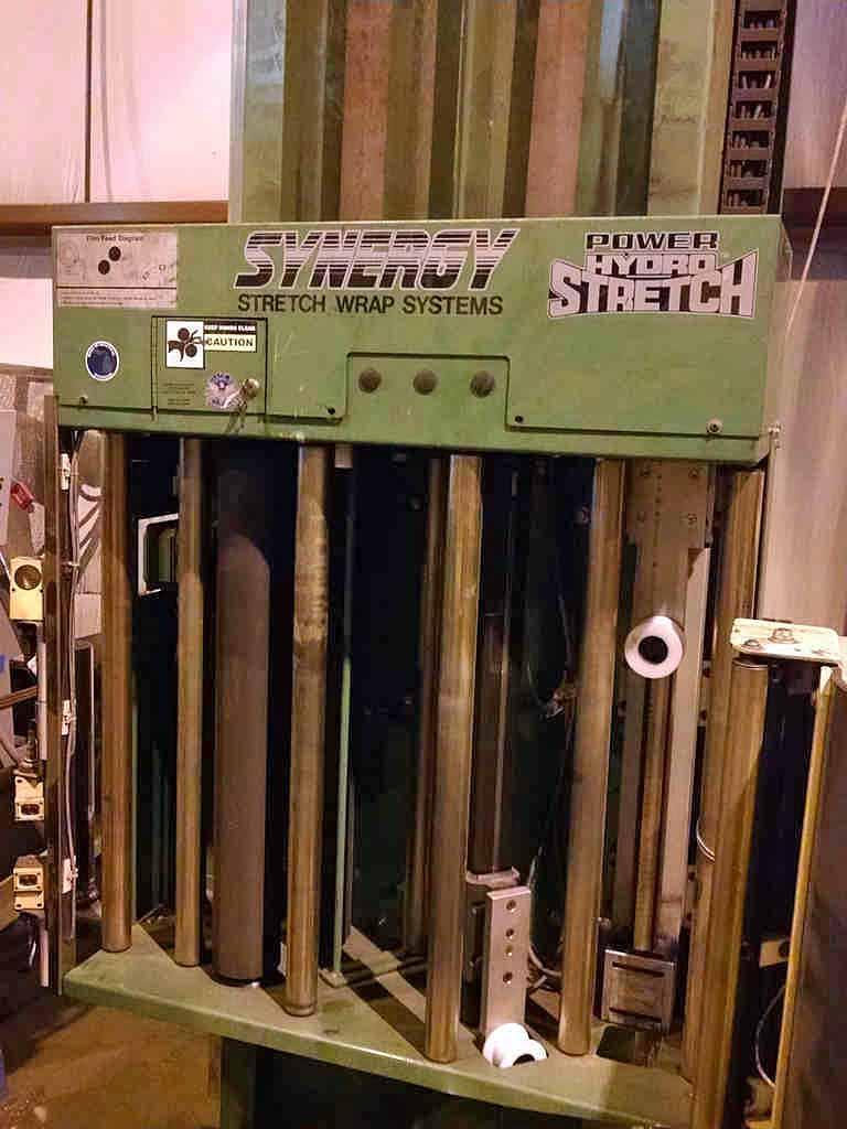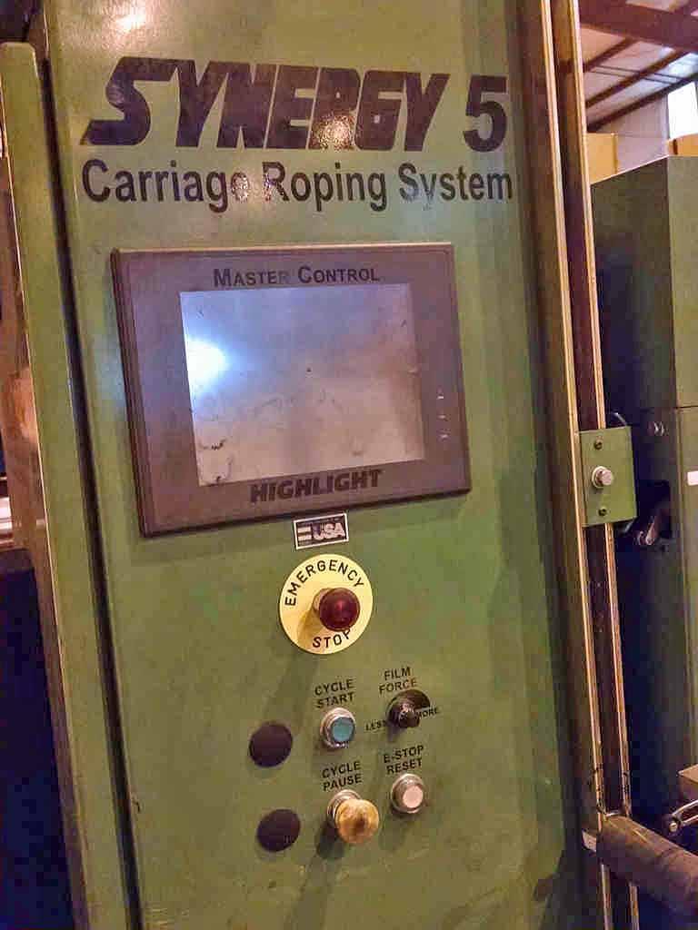 SES/Highlight Industries Coil Stretch Wrap Line Consisting of: -SES Motorized Conveyor Sections: (3) Sections 58" W x 63" Long with 4" Dia. Rolls Each Section individually powered by AC Gearmotor Photo Electric Limit Switches -Highlight Synergy 5 Stretch Wrapper: Power Hydro Stretch 65" Wide x 7' Long Powered Conveyor Conveyor also has powered rotation. 20,000# Coil Weight Capacity 3 HP AC Gearmotor for rotation Separate AC Motor for Conveyor Rolls 24" High Pass Line Height 6' Vertical PVC Roll Head Travel -Technical Description: Synergy 5 High Speed Roper Automatic Turntable Stretch Wrapper Model: MCJ-14013 Serial No.: G509-097-14013 Mfg.: Highlight Industries General System Information: Dual Power Hydro-Stretch, a feature exclusive to Highlight Industries, Inc. provides two independent levels of pre-stretch: one for the bottom of the product, the other for the rest of the product. Over 70% of film breaks occur at the bottom of the product where the product and pallet meet. Dual Power Hydro-Stretch allows you to set the pre-stretch level at the bottom of the product independent of the pre-stretch level on the rest of the product. This allows products to be wrapped tighter at higher stretch levels and at lower costs. Unlimited Film Stretch: Dual Power Hydro-Stretch has the ability to stretch any gauge or any quality of film to its ultimate stretch level. The stretch level of the Dual Power Hydro-Stretch is unlimited because it is not controlled by gears or pulleys. The flexibility of Dual Power Hydro-Stretch insures that whatever films are available today or tomorrow can be used to their maximum efficiency. Film Force Control: The film force applied to the product is also fully adjustable. Any force level, from a very light force to a very high force, can be applied to a product independent of the pre-stretch level. The pre-stretch level is maintained even when film force levels are decreased. Other older technology systems suffer from inelastic strain recovery, which relaxes or gives back 30% to 70% of the pre-stretch of the film when light force is applied to the product. This problem of relaxing does not occur with the Highlight Dual Power Hydro-Stretch. Dancer Bar System: The dancer bar system on the Dual Power Hydro-Stretch controls the force to the product and applies it evenly around the product. Other systems increase and decrease the speed of the power feed downstream roller to compensate for changes in film demand from the corners of the pallet. The changing of the speed of the film feed to compensate for the corners of the pallet increases and decreases the stretch level and is hard on the film, possibly causing the film and applies it smoothly to the product. This dancer bar system also provides a visual reference to monitor the force applied to the product. Turntable System: -3 HP 3 Phase AC Motor -AC Frequency Drive with Acceleration and Deceleration Control -12 RPM Turntable Maximum Speed -20,000 lb. Capacity Conveyor - 30 FPM Film Carriage / Elevator System: -1 HP AC Carriage Drive Motor -Top and Bottom Wrap Counters -Dual Belt Elevator Lift -Adjustable Raise and Lower Speeds -Automatic Height Detection Photoelectric Sensor -Adjustable Height Over-rides Film Delivery System: -Dual Powered Hydro-Stretch -.75 HP 3 Phase AC Motor -AC Frequency Drive with Acceleration and Deceleration Control -Adjustable Film Pre-Stretch -Adjustable Film Force -10" Diameter Roll Capacity -20" Height Roll Capacity -Roping capable Electrical Specifications: -Electrical Service: 480 VAC 3 Phase, 30 Amp, 60 Hz. -Air: 80 PSI, 3S CFM -Nema-12 rated, free standing control panel -Flexible conduit wire-ways -JIC wiring standard -Programmable Logic Controller Allen Bradley Micrologix 1400 -Industrial Nema-12 Push Button Operator Controls -Maple Systems HM1520T Touch Screen Operator Controls -Quick connect electrical connection Operators Manual/Electrical Drawings included. |